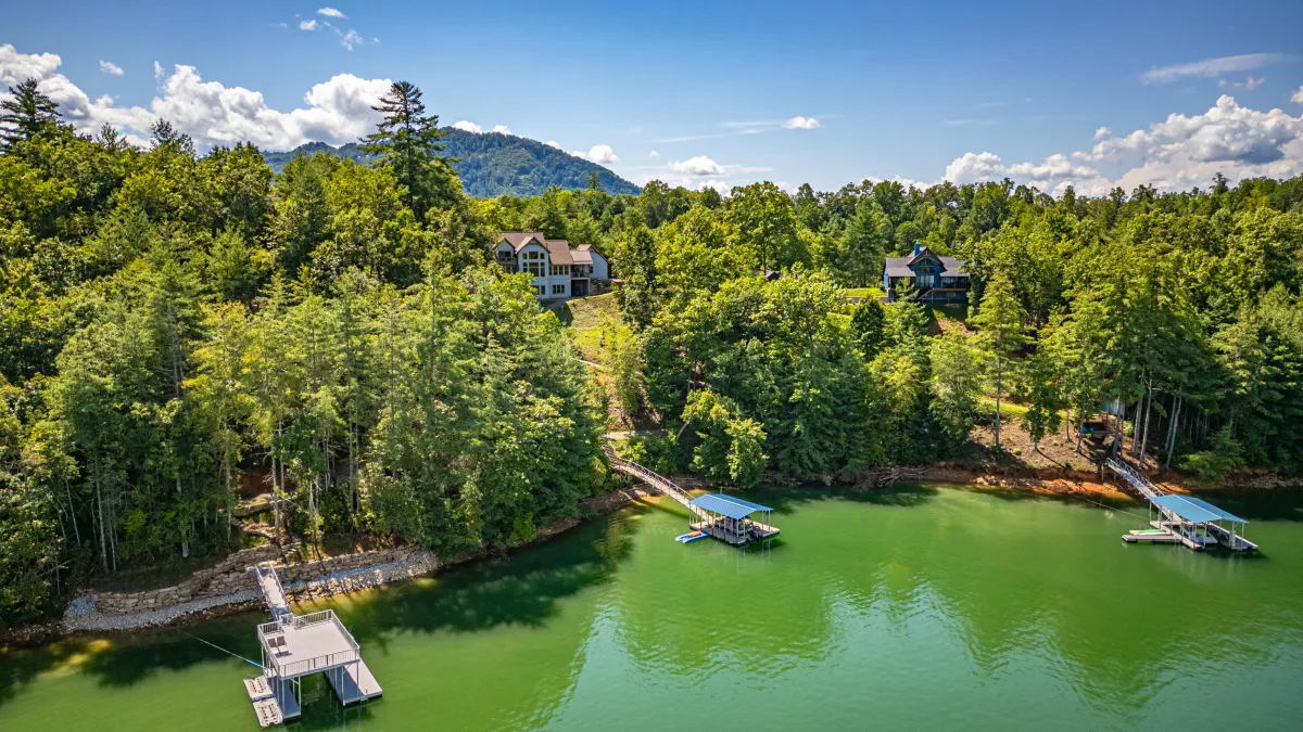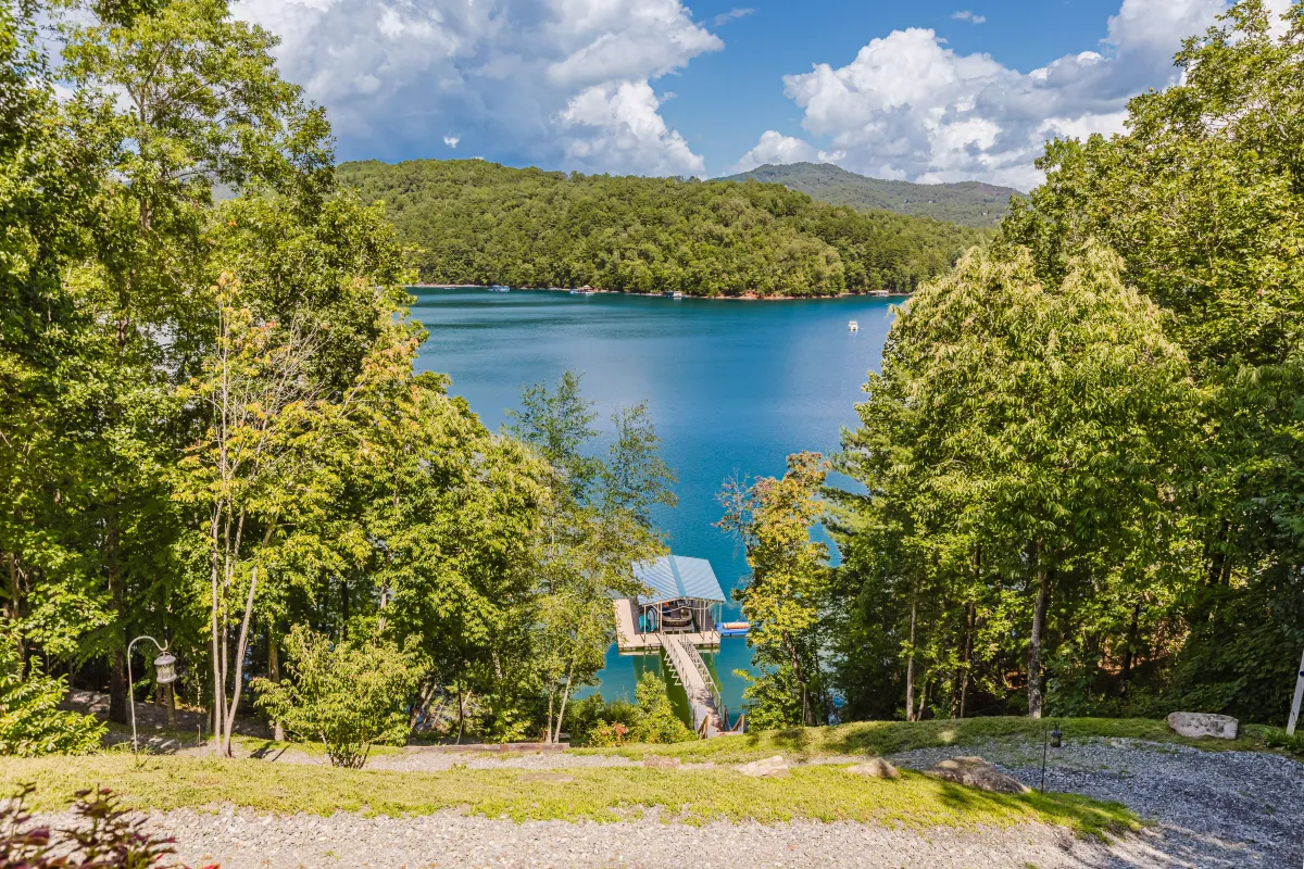 One of only THREE available luxury listings on secluded Fontana Lake!!!! Motivated Sellers! Experience lake living at its finest in this luxurious lakefront, mountain home. Perched on the shores of Fontana Lake, you will love exploring the lake, as well as the GSMNP, and the National Forests that surround the lake from the convenience of your private dock. Settled in a quiet cove, this open-concept custom home boasts vaulted ceilings, expansive windows, and plenty of natural light, while a gorgeous stone fireplace anchors the space. The generous main-level primary boasts stunning views, a thoughtful bathroom featuring custom tile, a soaking tub, dual sinks, and a large walk-in closet. Views continue to wow you from the well-appointed kitchen, upstairs loft, and second primary, as well as the large lower-level flex room and bedroom. Whether you are enjoying one of the decks, patios, or time on the very low-traffic lake, you might just think you found paradise. Sunrises from the back decks, sunset from the front patio, and 290 miles of shoreline will offer your, your loved ones, or vacation renters an experience with all the activity and relaxation you could ask for!